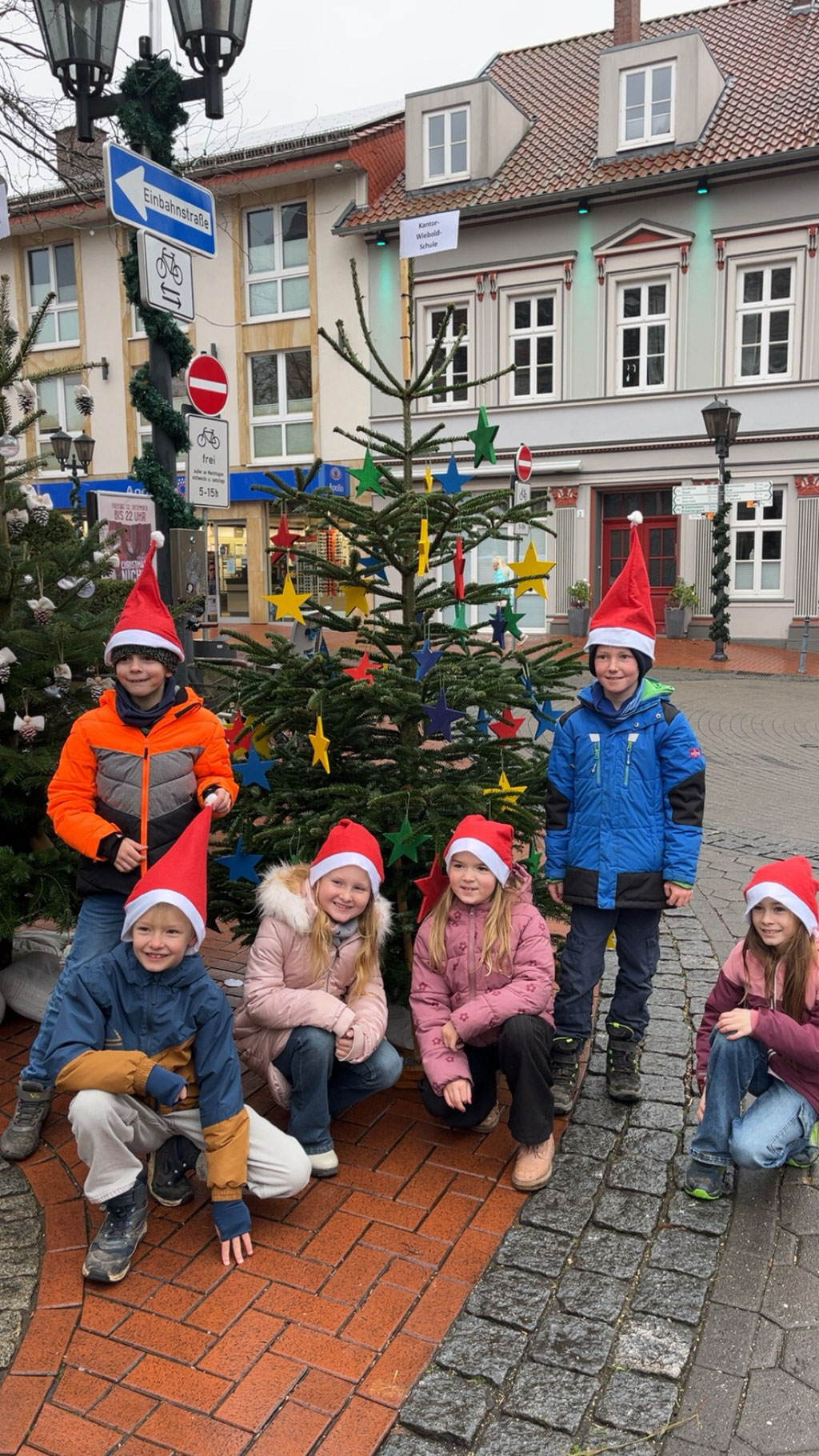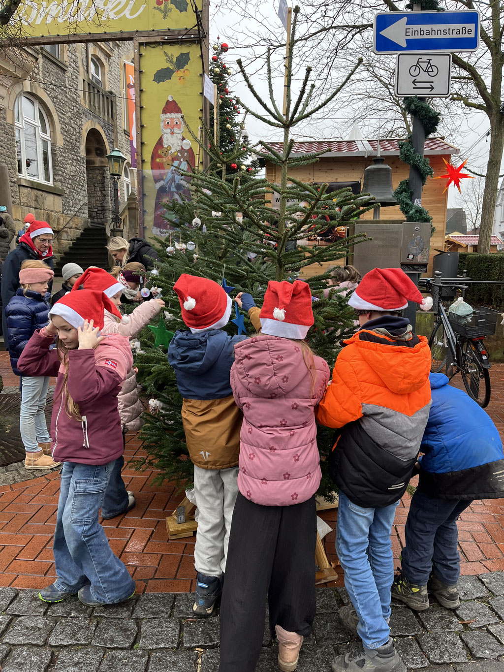 Auch in diesem Schuljahr hat sich unsere Schule auf dem Weihnachtsmarkt in Melle mit einem festlich geschmückten Tannenbaum präsentiert. Die Klassensprecherinnen und Klassensprecher des dritten Jahrgangs durften ihrer Kreativität freien Lauf lassen und sorgten dabei für einen besonders schönen Baum.