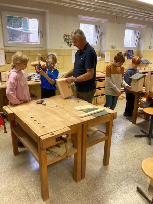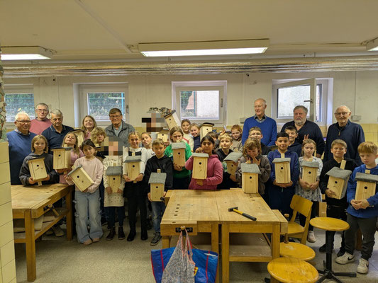 In der letzten Woche vor den Herbstferien war unser vierter Jahrgang wieder aktiv beim Bauen von Nistkästen. Gemeinsam mit vielen ehrenamtlichen Helferinnen und Helfern konnten die Kinder ihre handwerklichen Fähigkeiten üben und erweitern.