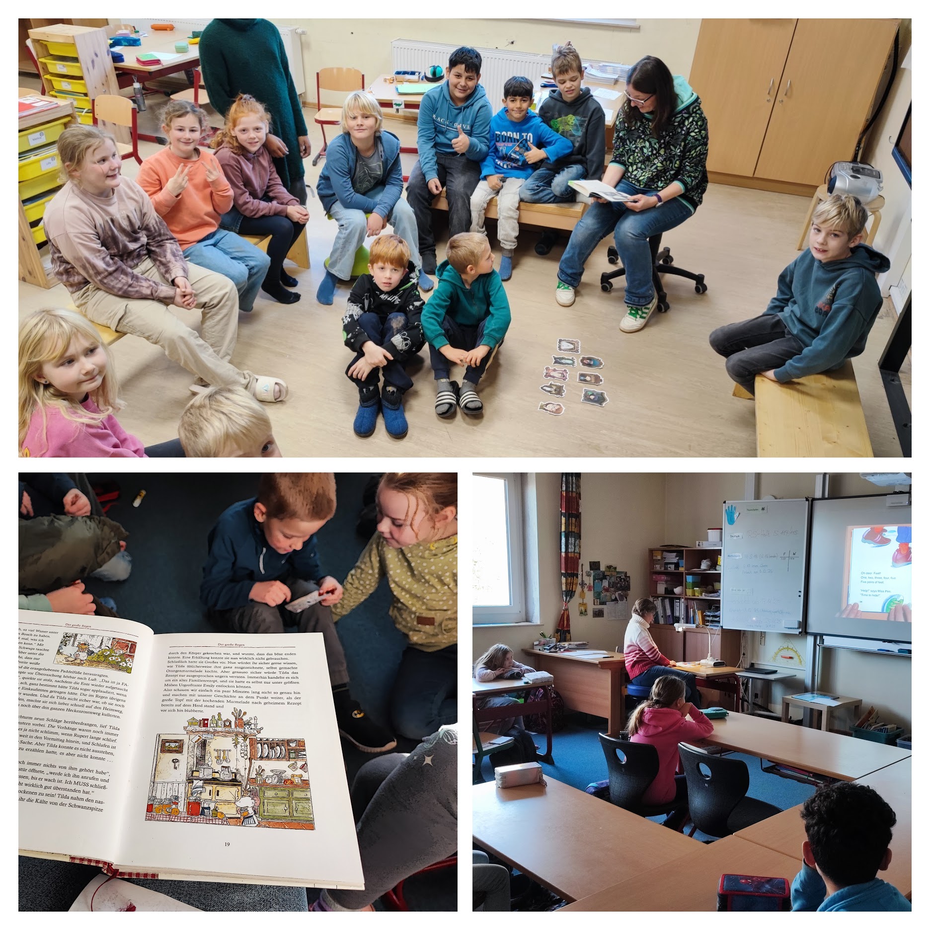 Im ganzen Haus war es bemerkenswert ruhig. Durch Türen und Fenster konnte man überall begeisterte Kinder beobachten, die konzentriert lauschten, staunten und in ihre Geschichten eintauchten. Der Vorlesetag hat wieder einmal gezeigt, wie wichtig das Vorlesen für die Sprachbildung, die Fantasie und die Freude am Lesen ist.